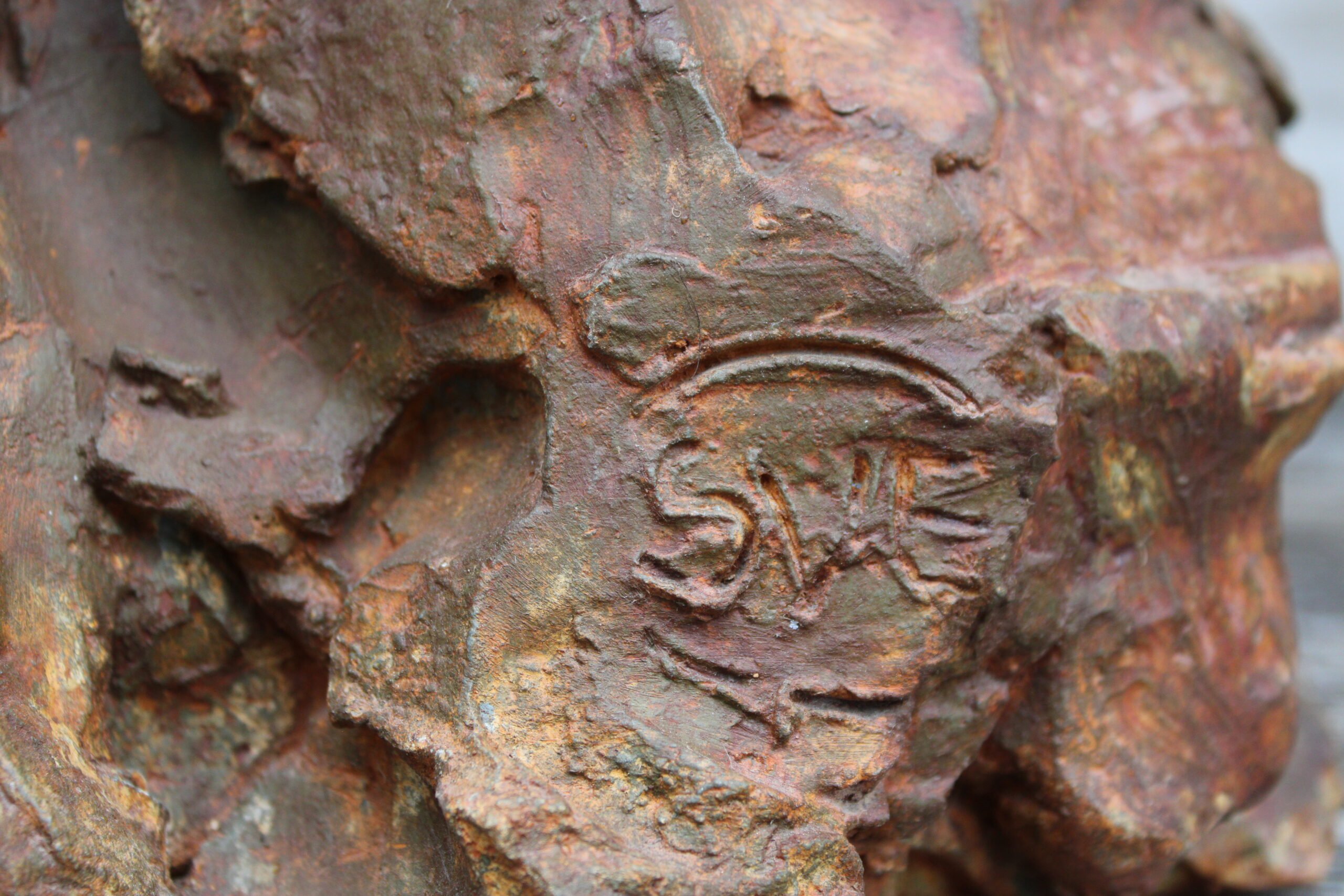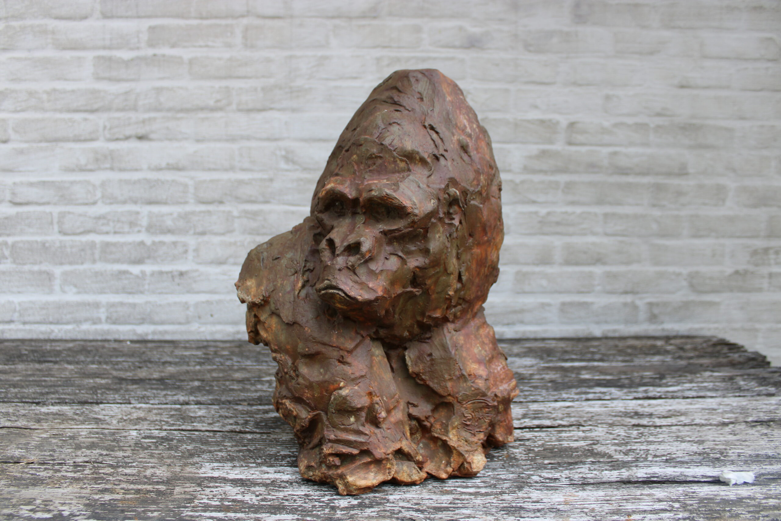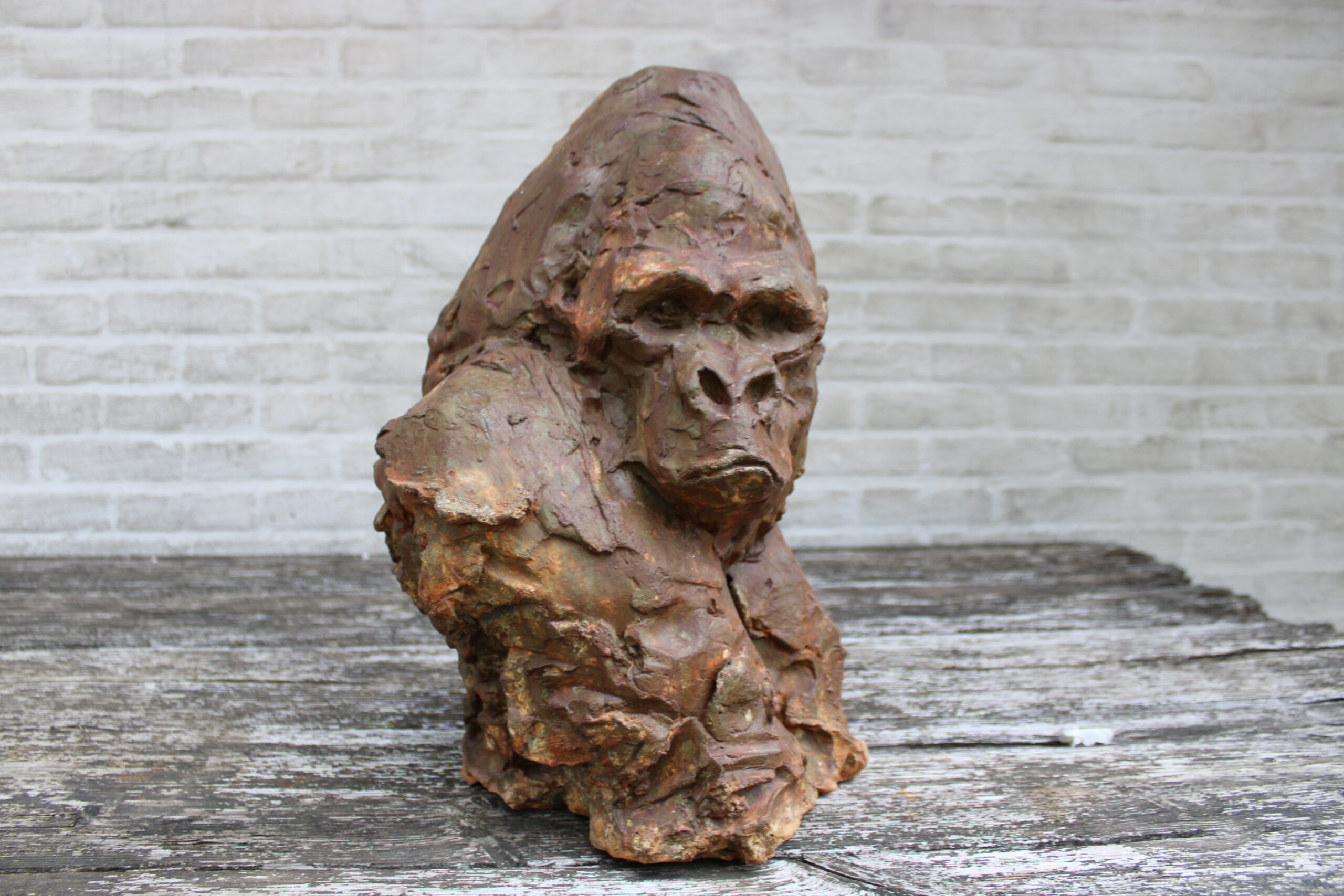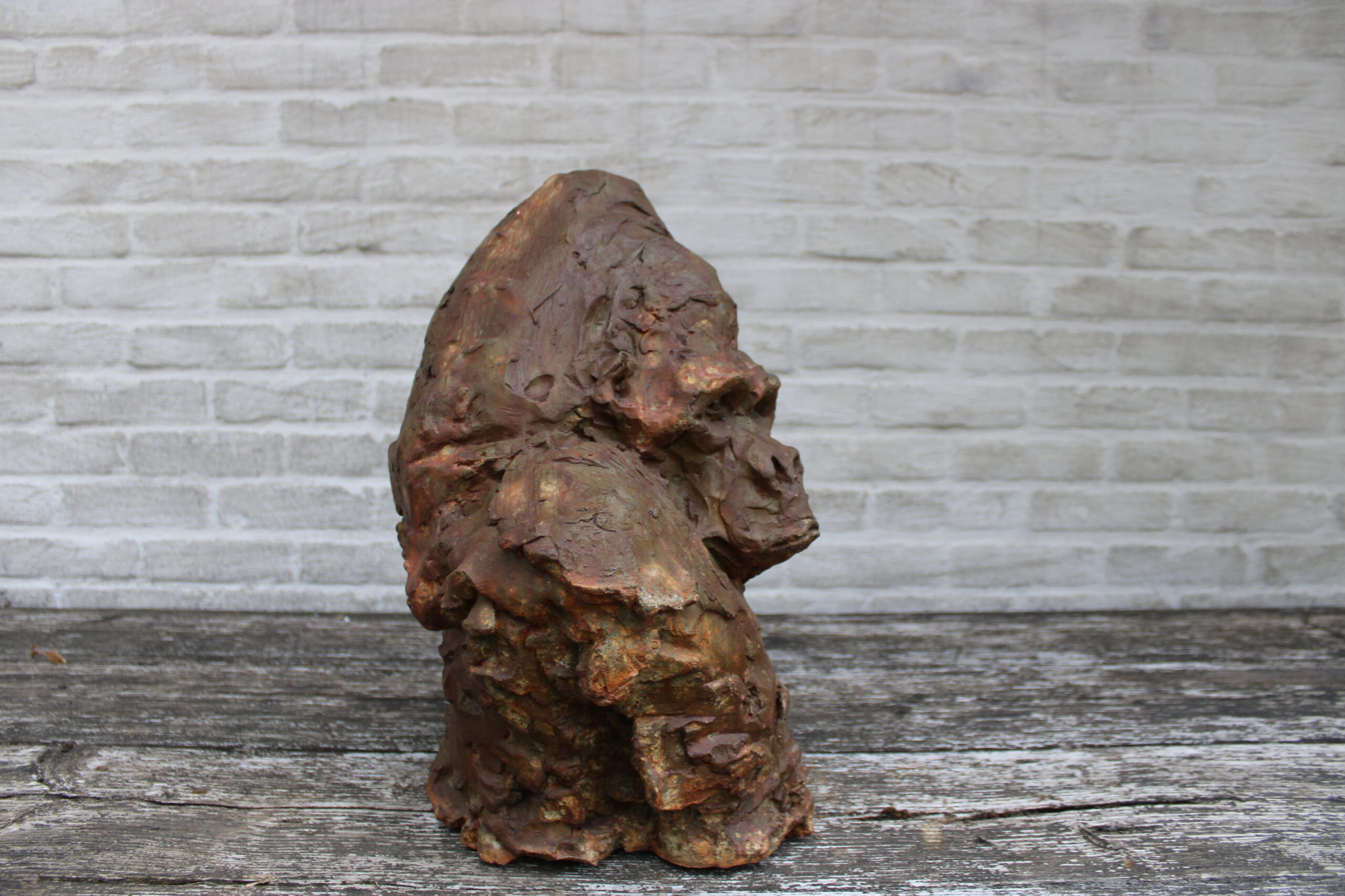 Materiaal: acrylaathars, roestkleurige patina